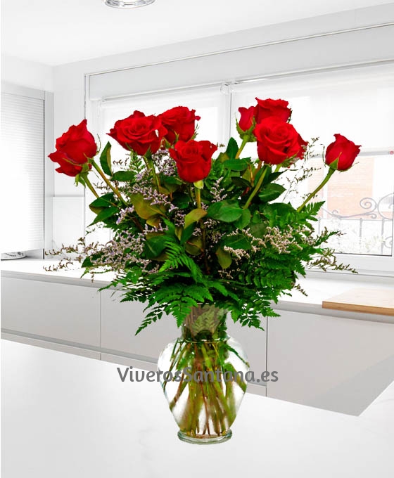 Elegante y perfecto este, Ramo de 10 Rosas de nuestra floristería online. Esta confeccionado con 10 rosas de tallo largo y decorado con elegantes y finos verdes. Sin duda, es el mejor regalo para esa persona a la que queremos ofrecerle un día diferente y especial, e ideal para regalar en cualquier momento, si lo que queremos es enviar rosas rojas a domicilio. Nuestros ramos de rosas, están realizados siempre con flores de primera calidad y frescas. Son suministradas diariamente por proveedores nacionales e internacionales. Los ramos de rosas para regalo, están realizados siempre por floristas profesionales, especialistas en el Arte Floral, por lo que siempre presentamos un producto fresco y elaborado con mucho mimo y cariño
